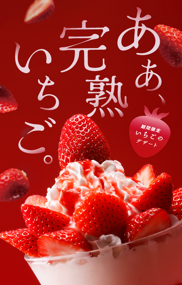 今年は新たに「完熟いちごシフォン」が登場!旬の国産いちごを増量したいちごデザート。