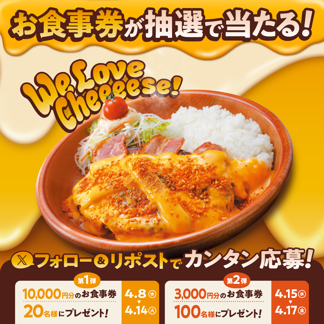 抽選でお食事券が当たる!「『We Love Cheeeese!』フェア」 Xキャンペーン開催中!