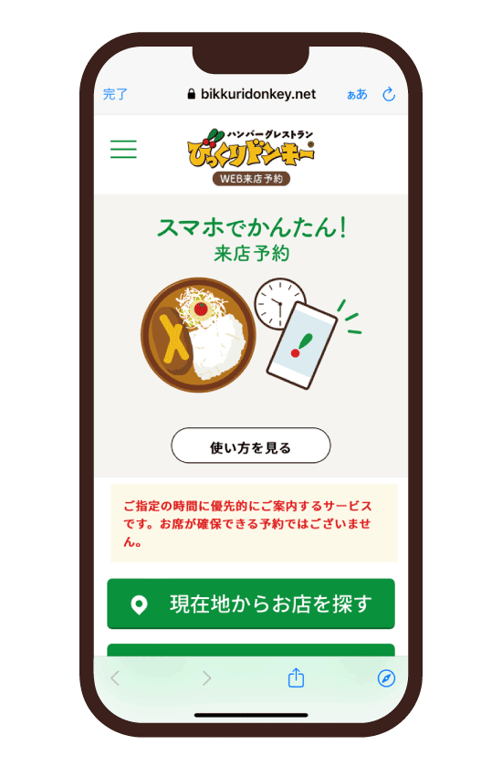 ご自宅や外出先など、お店から離れた場所でもお手持ちのスマートフォンから来店予約ができる!
