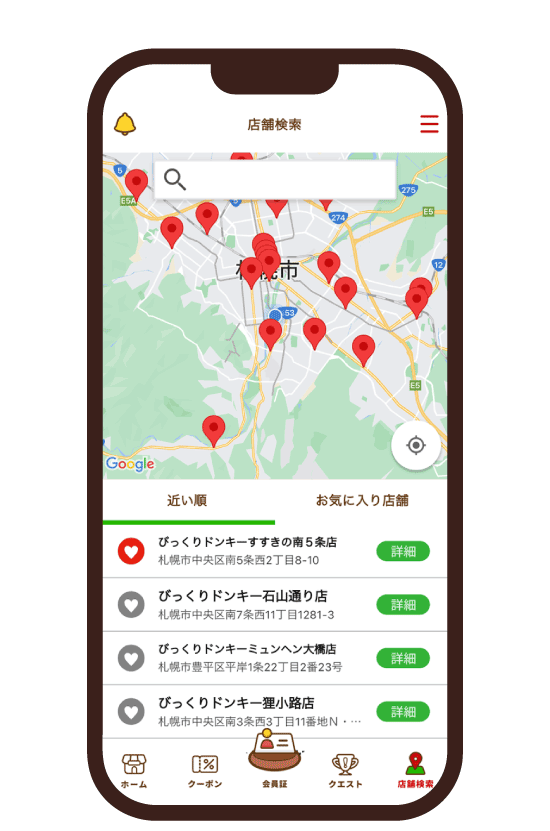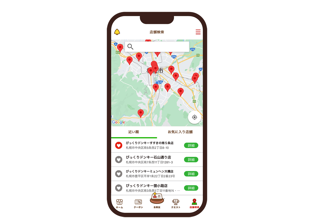 最寄りの店舗もすぐに検索。お気に入り登録もできます。