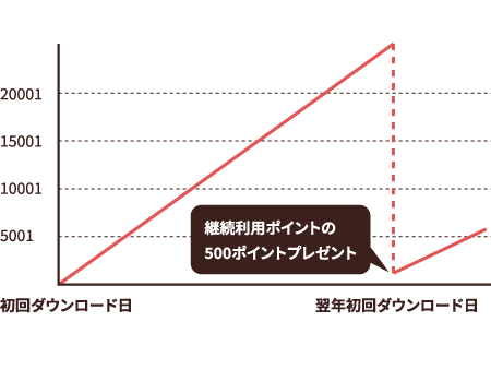 ポイントと会員ランクは初回ダウンロード日から1年ごとにリセットされます。