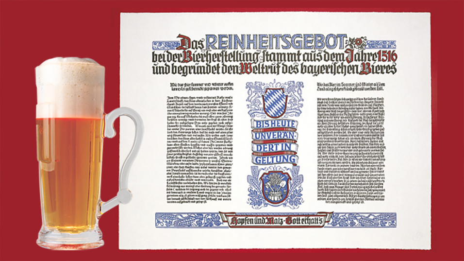 1516年にドイツで制定された法律『ビール純粋令』。食に関する法律の中で、現存する最古のものです。この法律はビールの原材料を「麦芽・ホップ・酵母・水のみ」と定めるもの。ドイツでは現在も多くのビールがこのビール純粋令に則ってつくられており、ドイツビールの品質を長年に渡り支えています。