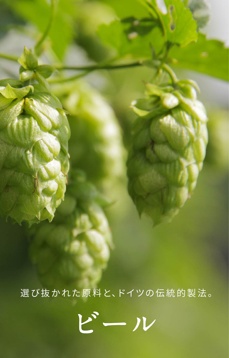ホップは、香りの良い希少品種のドイツ産アロマホップのみを使用しています。さわやかな苦味と後味の良さが特徴で、飲み飽きず、一口ごとにおいしく感じられるすっきりとした味わいを生み出しています。