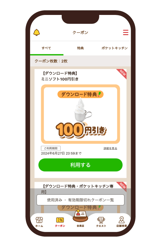 貯まったポイントに応じて会員ランクがアップ!ランクごとにお得な「会員特典クーポン」が使える!