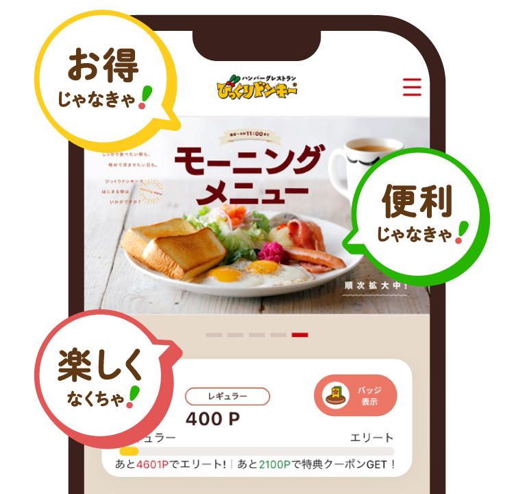 期間内に指定の来店回数をクリアしてびっくりドンキーマスターに!