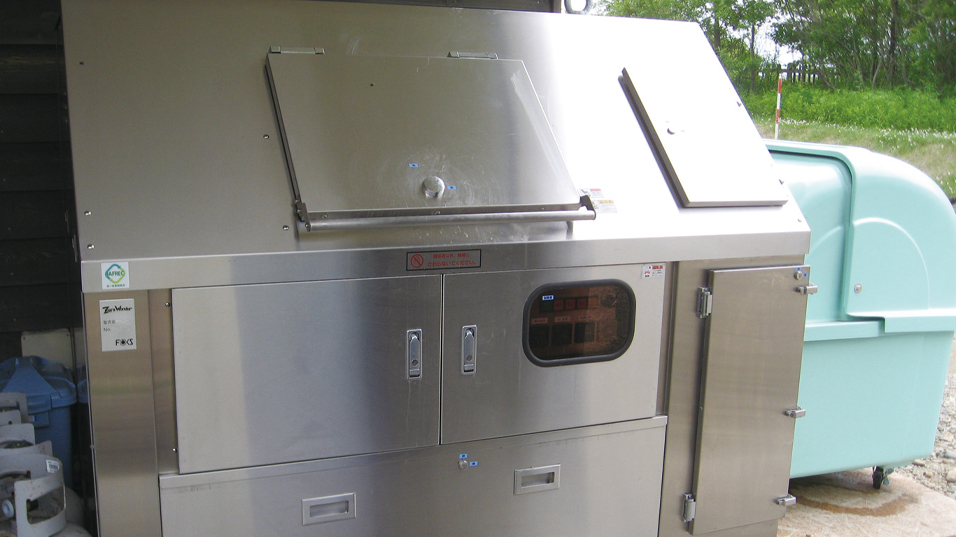 びっくりドンキーの一部店舗では、お店から出る調理くずや食べ残しといった生ごみを、メーカーと共同開発した粉砕乾燥処理機「Zero Wonder」で処理。「生ごみ資材」と呼ばれる発酵促進剤にリサイクルします。