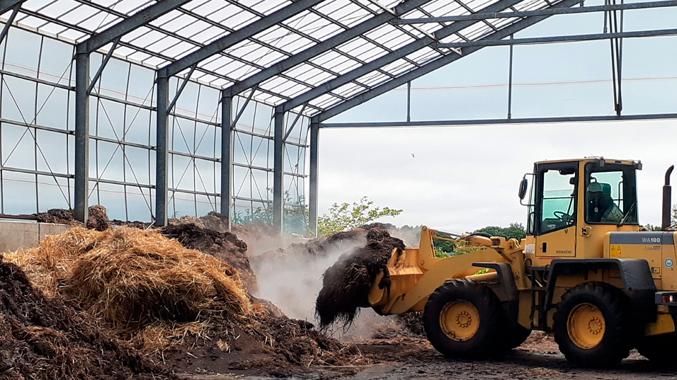 生ごみ資材は全国にある協力農場へ運ばれて堆肥の原料になります。できあがった堆肥は、各農場で使用され、びっくりドンキーで使われる大根・お米の産地の一部でも活用されています。