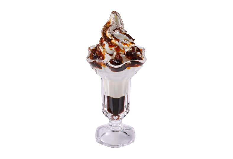 北海道ソフトクリームとチョコレートアイスに自社製ナッツショコラケーキをトッピングした、チョコレート感を存分に楽しめるパフェです。